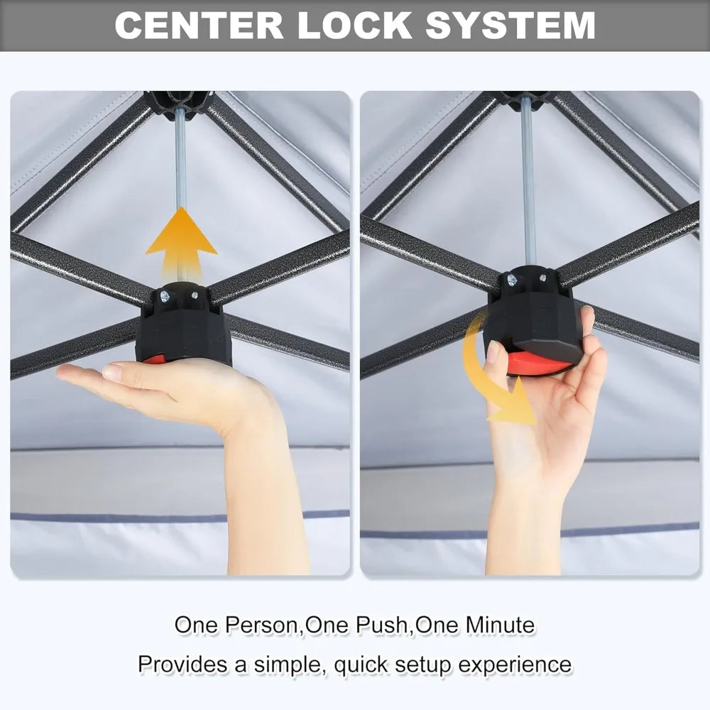 - Fast solo setup: The patented center lock lets you push to lock all four legs in seconds, with three height settings to adapt to uneven ground.