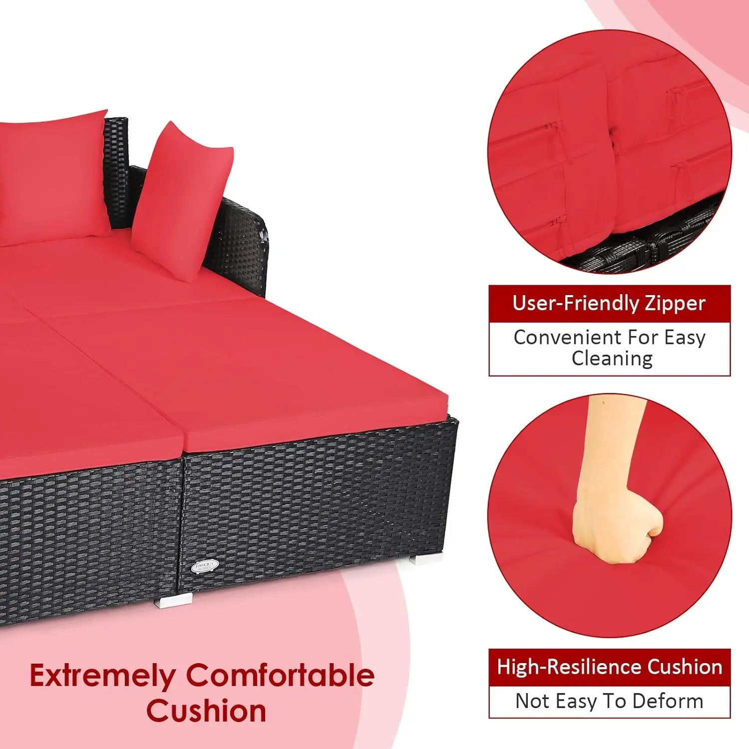 - Upholstered cushion with easy maintenance: high-resilience foam keeps its bounce, waterproof fabric with a zipper adapts to cleaning and removal for rattan care.
